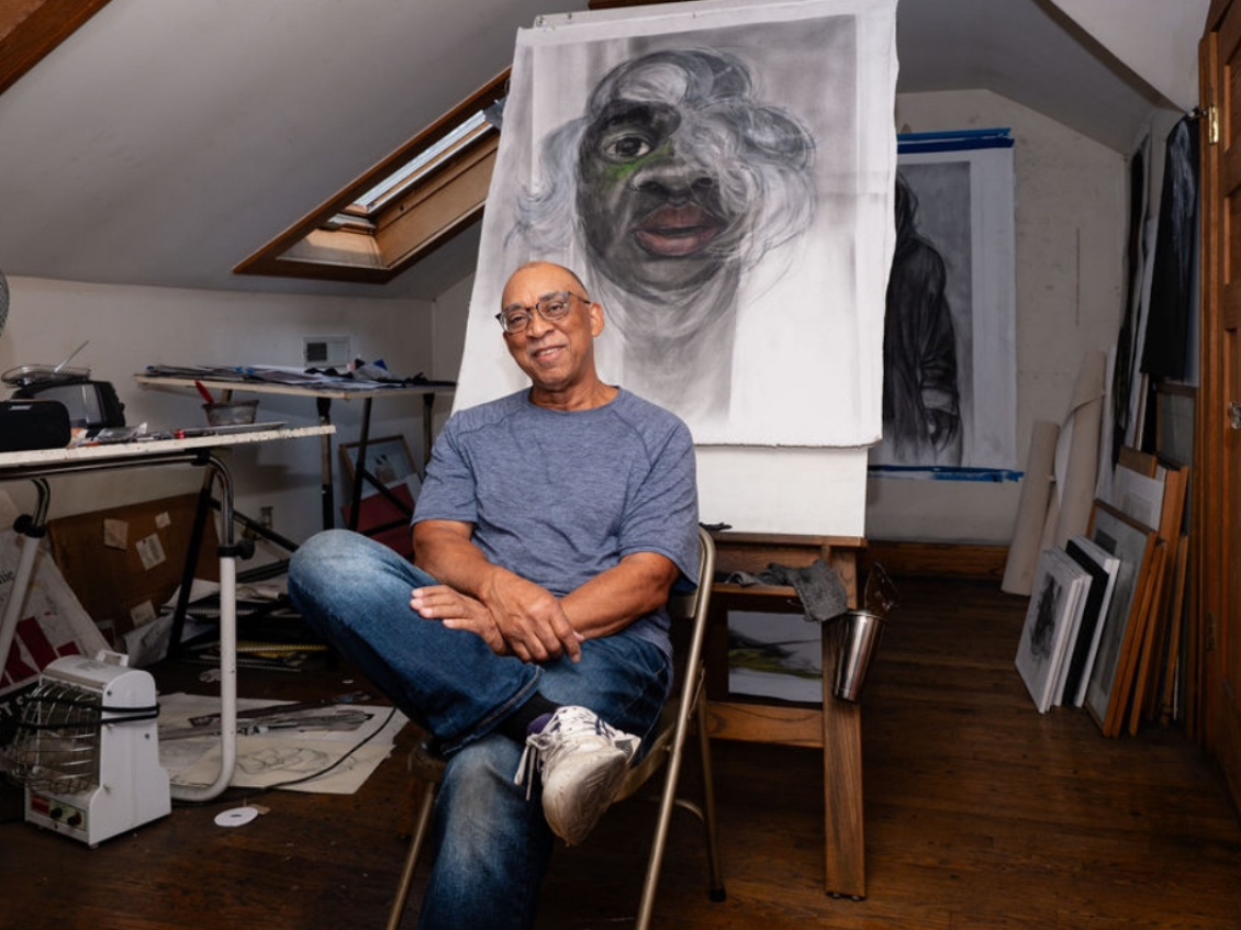 Howard’s work is relevant and provoking. While masked by beautifully expressive lines and pops of color, if some of his work makes you feel disheartened, angry, or energized, well, it should. Howard combines imagery culled from many sources such as news reports about police brutality, witnessed homelessness and desperation, as well as rising activism such as The Movement for Black Lives. He creates his characters from lived experiences—both personal and those of others—and when viewing his work you feel their sorrow, defiance, determination, and anger and resistance.